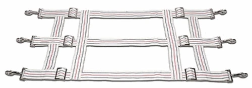 Cotton Stall Guard is made of rugged 2″ webbed cotton in open lattice pattern. This barn stall guard for horses is white with royal and red stripes. Measures 16″ in height and adjusts to 48″ in width. Comes complete with heavy duty nickel-plated hardware for installing. Three horizontal straps adjust on each side. Nice stall guard for hot climates where air circulation is needed.