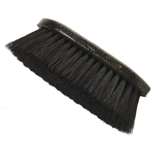 The HAAS Diamond Noir Glitter Brush is a small size horse grooming brush that removes dirt, dust, and dander, and leaves a beautiful shiny coat. The 2″ long horsehair bristles are soft but strong enough to remove dirt. The black brush has a a base enhanced with gold glitter so it is fancy as well as effective!
