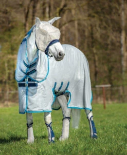 The Amigo Bug Buster Vamoose is proven to repel biting bugs such as mosquitoes, ants, ticks, chiggers, flies & midges. The soft fabric is a knitted polyester with sun reflecting properties. The Amigo Bug Buster Vamoose features a large tail flap to protect the hind end, leg arches with belly wrap for added leg & belly protection, and a classic front closure. The shoulder & mane area are lined. In Silver with Plum, Navy, or Purple trim.