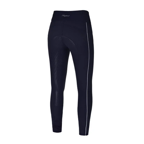 The Women’s Katja E-Tec Full Grip Pull On Breeches offer four-way stretch with a breathable technical fabric that repels dust. It is wicking, quick drying, and water resistant. The vertical piping on the outer leg and Kingsland printed logos on the pocket and waistband are low key and sporty. KL Katja Full Grip Pull On Breeches in two colors are a great addition to your everyday dressage riding wardrobe.