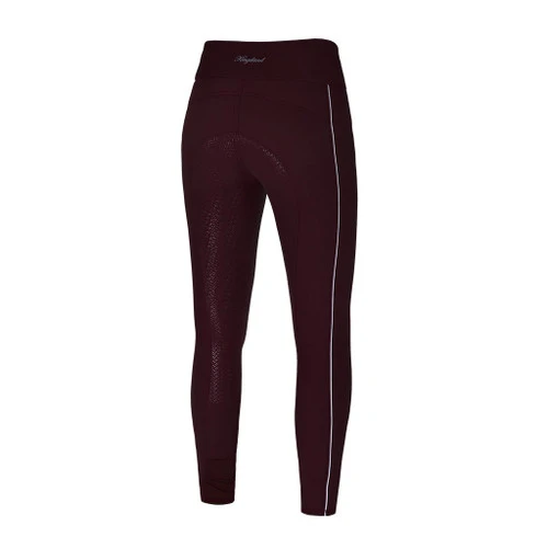 Kingsland Katja E-Tec Full Grip Pull On Breeches are the perfect dressage schooling breech with a flexible silicone print seat, wide flat waistband, and stylish trim. The KL Katja Full Seat Pull On Breech is as easy to wear as riding tights but has more structure with a gentle compression fit. Women’s dressage breech for schooling, lessons, and casual barn days is available in Navy (almost black) and Red (closer to a merlot color) with clear silicone print seat.