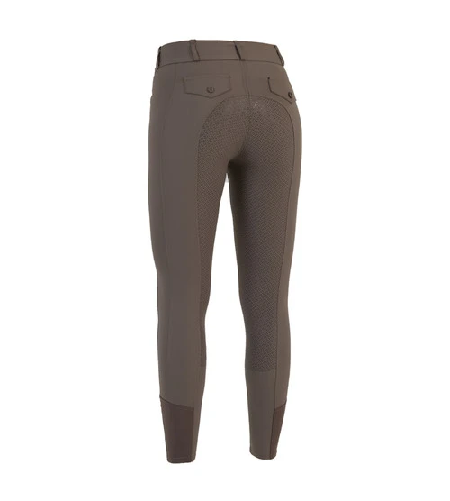 Kingsland Klara Full Grip Breech keeps its stretch with a flexible silicone print grip seat. Casual dressage riding breeches from Kingsland have a high, wide waistband, faux pockets in front and back, and a handy phone pocket on the thigh with 3D rubber print logo. Casual dressage riding breeches are ideal for schooling and training and the rich brown color is so easy to wear. With premium new fabric, the ladies Kingsland Klara T-Tec Breeches are a smart addition to your dressage riding wardrobe