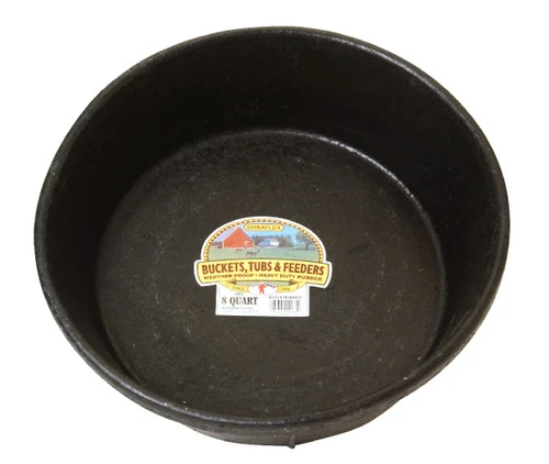 Little Giant Rubber Feed Pan in 8 quart size is made of heavy duty DuraFlex black rubber. The large 8 quart capacity holds 2 gallons. Rubber feed pans are flexible to prevent injuries if a horse steps on it. DuraFlex rubber won’t crack or freeze, so it’s perfect for year-round use.