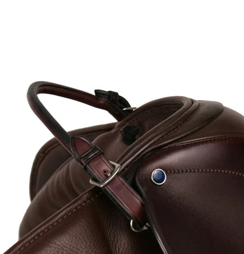 The Nunn Finer Hand Hold provides an easy way to add a strap to an English saddle for added security, just in case. Buckles to the front dee-rings of any saddle. Great saddle accessory for lessons, children, novice riders, and horses that are green and unpredictable. One size. Grab strap is rolled leather for comfort. Black or Havana.