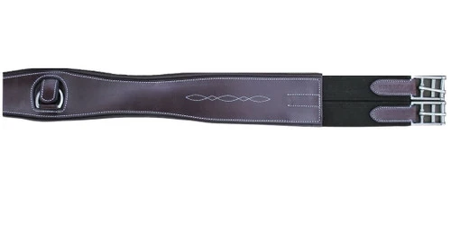 Pace Perfect Girth from Red Barn has a center D-ring that is recessed and held with a velcro tab when not needed. This gives a clean line, further enhancing its beauty as a girth for the competitive hunter. The D-ring makes it easy to attach and detach a martingale between classes and schooling. The stainless steel roller buckles make the tacking process easier. Nice 2-end elastic saddle girth from KL Select boasts excellent quality and a timeless look. In Brown.
